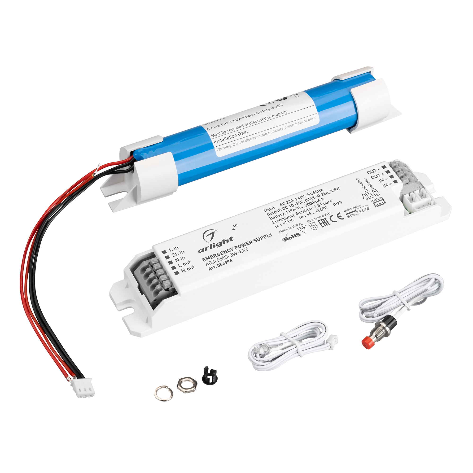 Блок аварийного питания ARJ-EMG-5W-EXT (10-90V, 1.5H, LiFePO4) (Arlight, IP20 Пластик, 3 года) 054996 в Казани