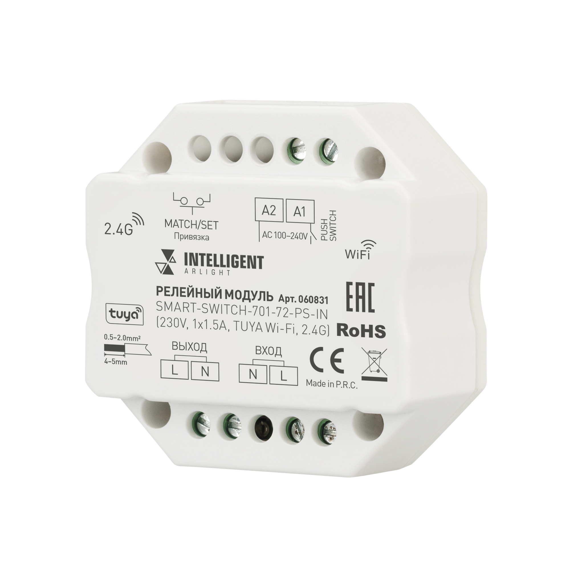 INTELLIGENT ARLIGHT Релейный модуль SMART-SWITCH-701-72-PS-IN (230V, 1x1.5A, TUYA Wi-Fi, 2.4G) (IARL, IP20 Пластик, 5 лет) 060831 в Казани