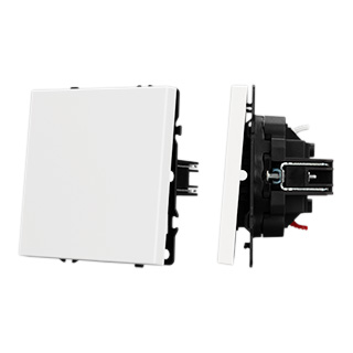 Строгие геометрические линии гармонично сочетаются с функциональностью продуманных механизмов, создавая идеальное решение для дизайн-проектов, где важны как эстетика, так и практичность. Механизм выключателя света совместим с рамками серии NOBE, создает утонченный минималистичный вид. Скрытый тип монтажа позволяет гармонично встроить в интерьер любого современного дизайн-проекта. Видимая часть механизма выполнена из высококачественного пластика белого цвета и имеет Soft-Touch покрытие, что придает изделию приятные тактильные ощущения и стильный внешний вид. Соединение посредством быстрозажимных контактов, позволяет надежно подсоединить механизм выключателя к питающим элементам, минимизируя затраченное время на монтаж. А усиленные распорные лапки двойного захвата надежно фиксируют механизм в установочном подрозетнике круглого сечения диаметром 60мм. Суппорт окрашен в черный матовый цвет под основу механизма и выполнен из металла толщиной 1,5мм, что обеспечивает безопасность и уверенность в установке. На каждой стороне суппорта размещены фиксирующие элементы, позволяющие комбинировать механизмы в системы до 5 шт как горизонтально, так и вертикально.