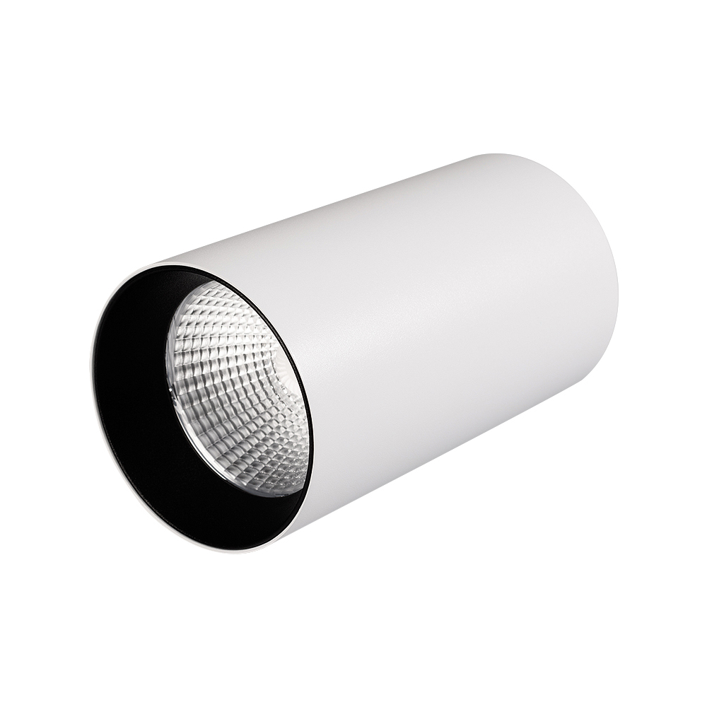 Накладной светильник 15Вт, белый круглый корпус, черная вставка, металл. Цвет ТЕПЛЫЙ БЕЛЫЙ 3000K, св.поток 1100лм, CRI(Ra)>80, угол 40°. Размер Ø85x155мм. Встроенный драйвер PRI:220-240VAC, SEC:DC 500mA 23-36V 15Вт.