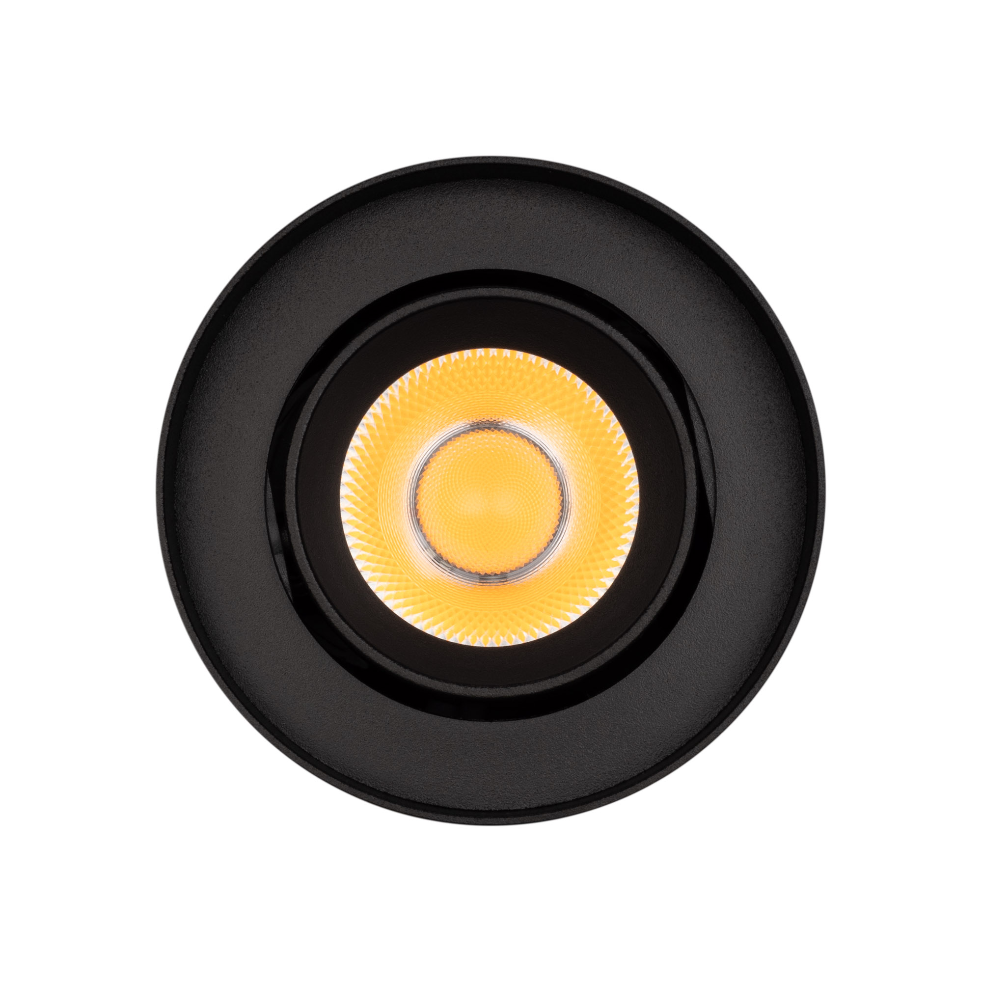 Накладной интерьерный светильник. Мощность 10 Вт, св. поток 970 лм, 93 лм/Вт, дневной 4000 K, CRI>90, угол 24°, регулируемое направление луча 40° (20+20), поворотный световой модуль вокруг своей оси на 340°, UGR <18, напряжение питания 230 В. Черный круглый корпус из алюминия, степень защиты IP54. Размер: диаметр 86,5 мм, высота 120 мм. Монтаж накладной. Драйвер 27-43 В, 250 мА, пульсация <1%.